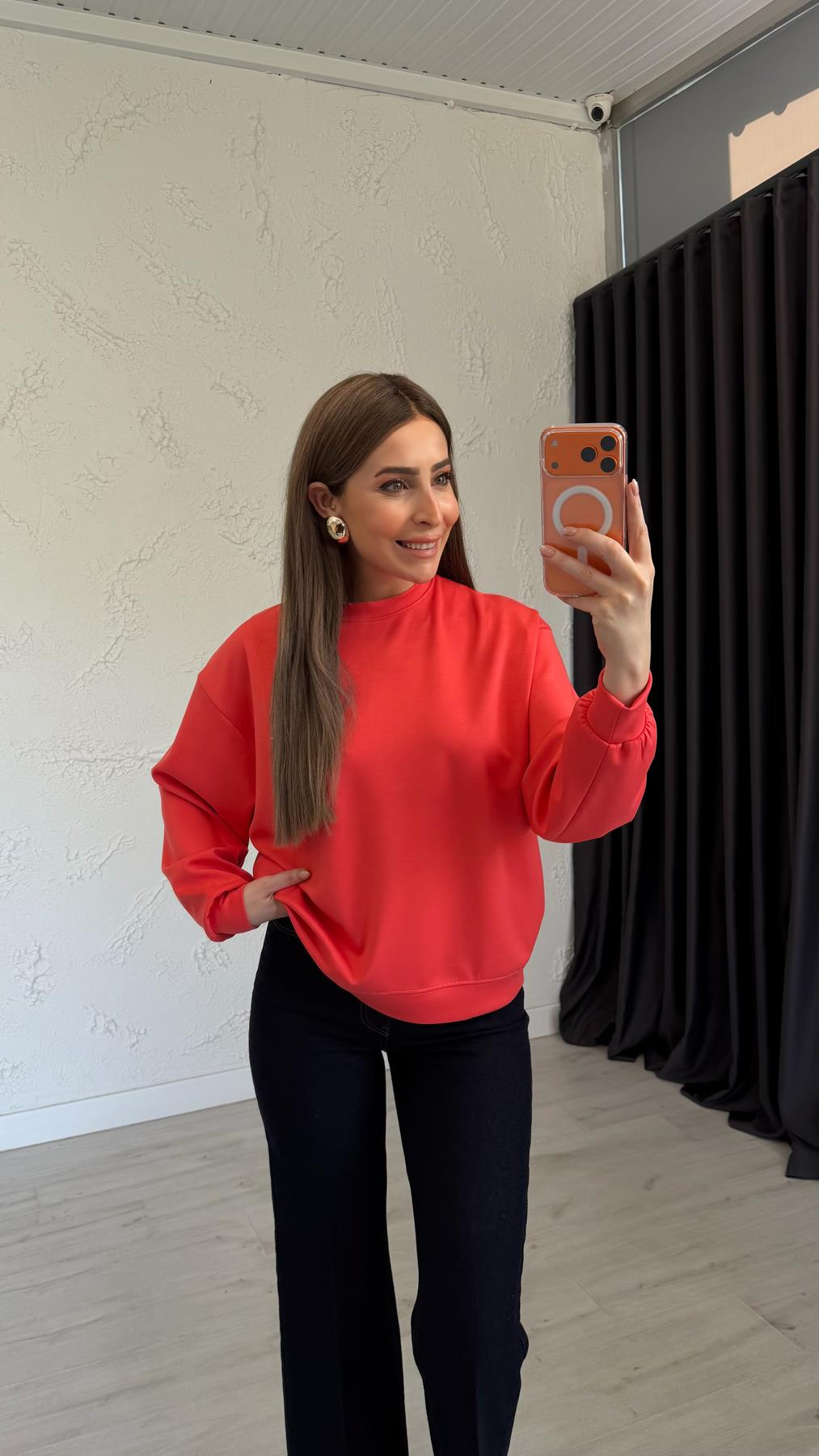 Model üzerindeki sweat S bedendir.