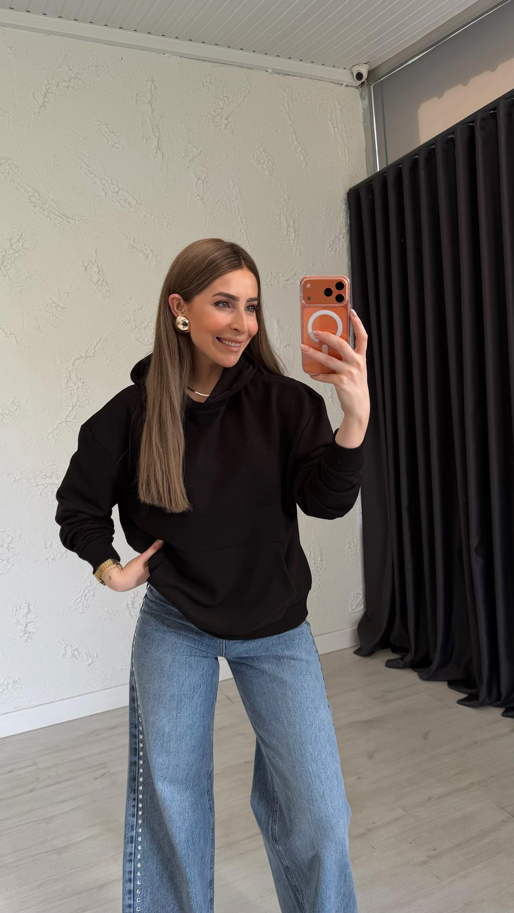 Model Ölçüleri Boy: 1.74 cm Kilo: 54 kg Model üzerindeki sweat XS bedendir.