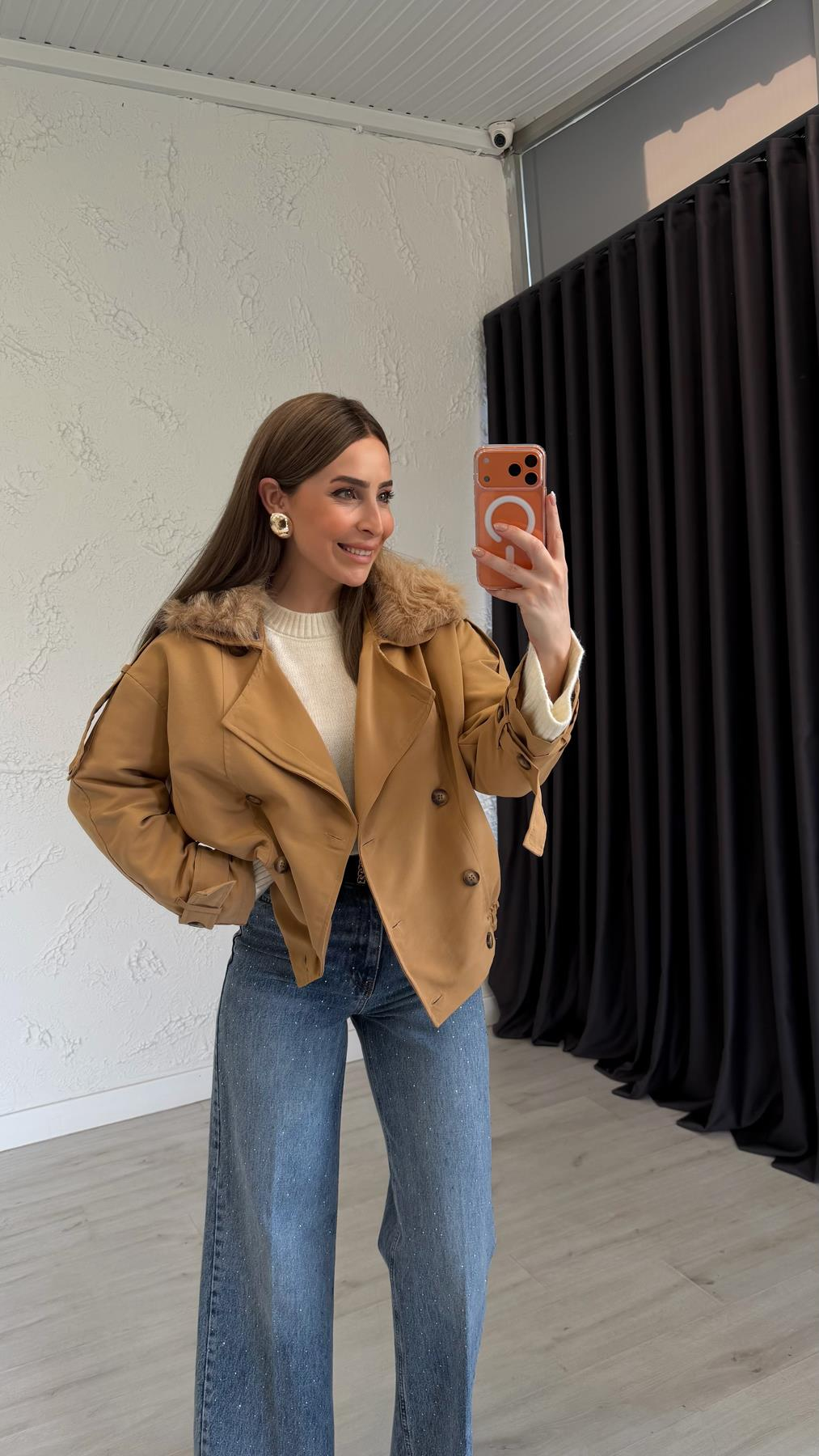Ürün uzunluğu 60 cmdir. İçi astarlıdır. Kürk detayı çıkartılabilir. Ürün tam kalıptır. Kendi bedeninizi alabilirsiniz. Kumaş Cinsi