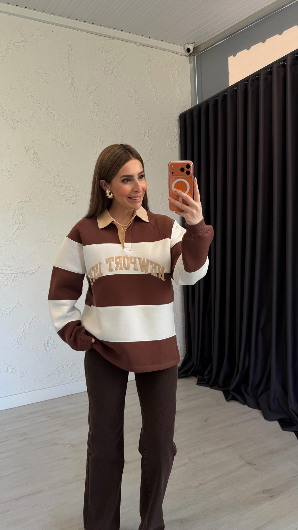 Newport Yan Çizgili Sweatshirt Kahverengi (7777)