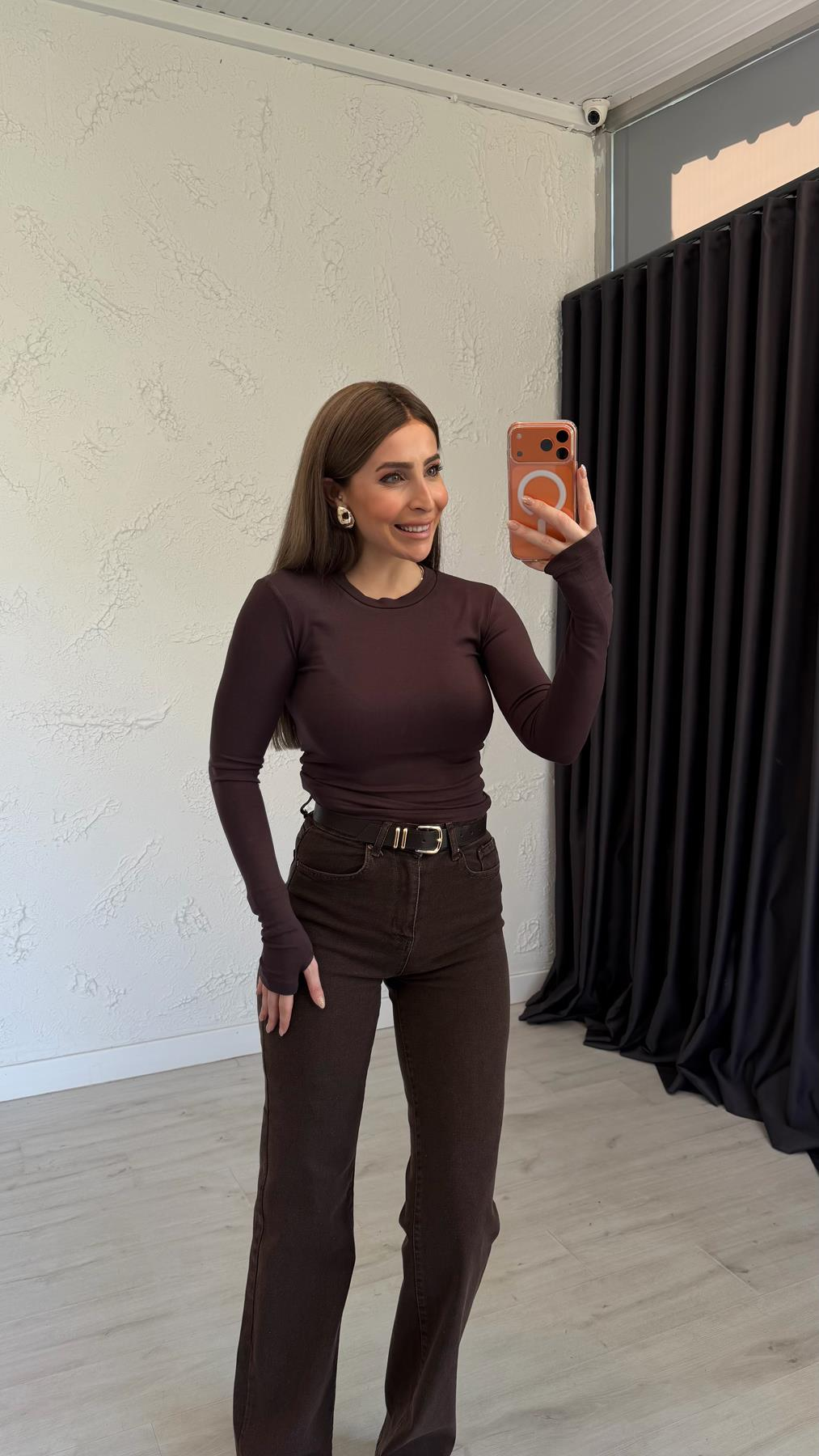 Parmak Geçmeli Bluz Kahverengi (7787)