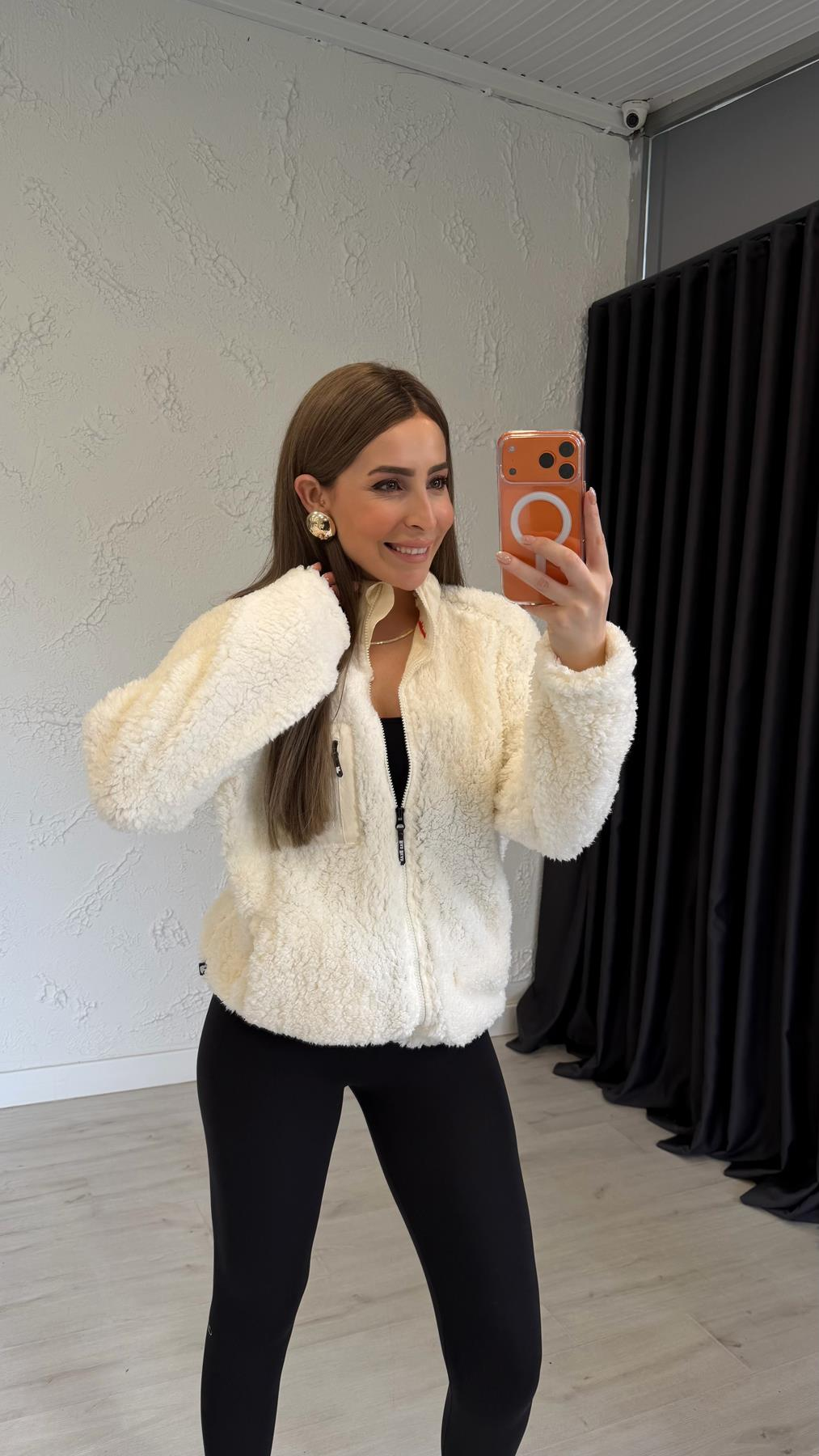 Model üzerindeki ceket S bedendir. Ürün boyu 65 cmdir.