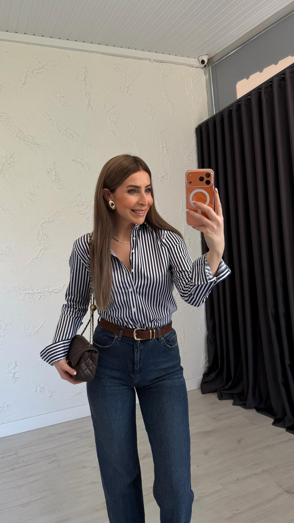 Model Ölçüleri Boy: 1.74 cm Kilo: 58 kg Model üzerindeki gömlek XS bedendir.