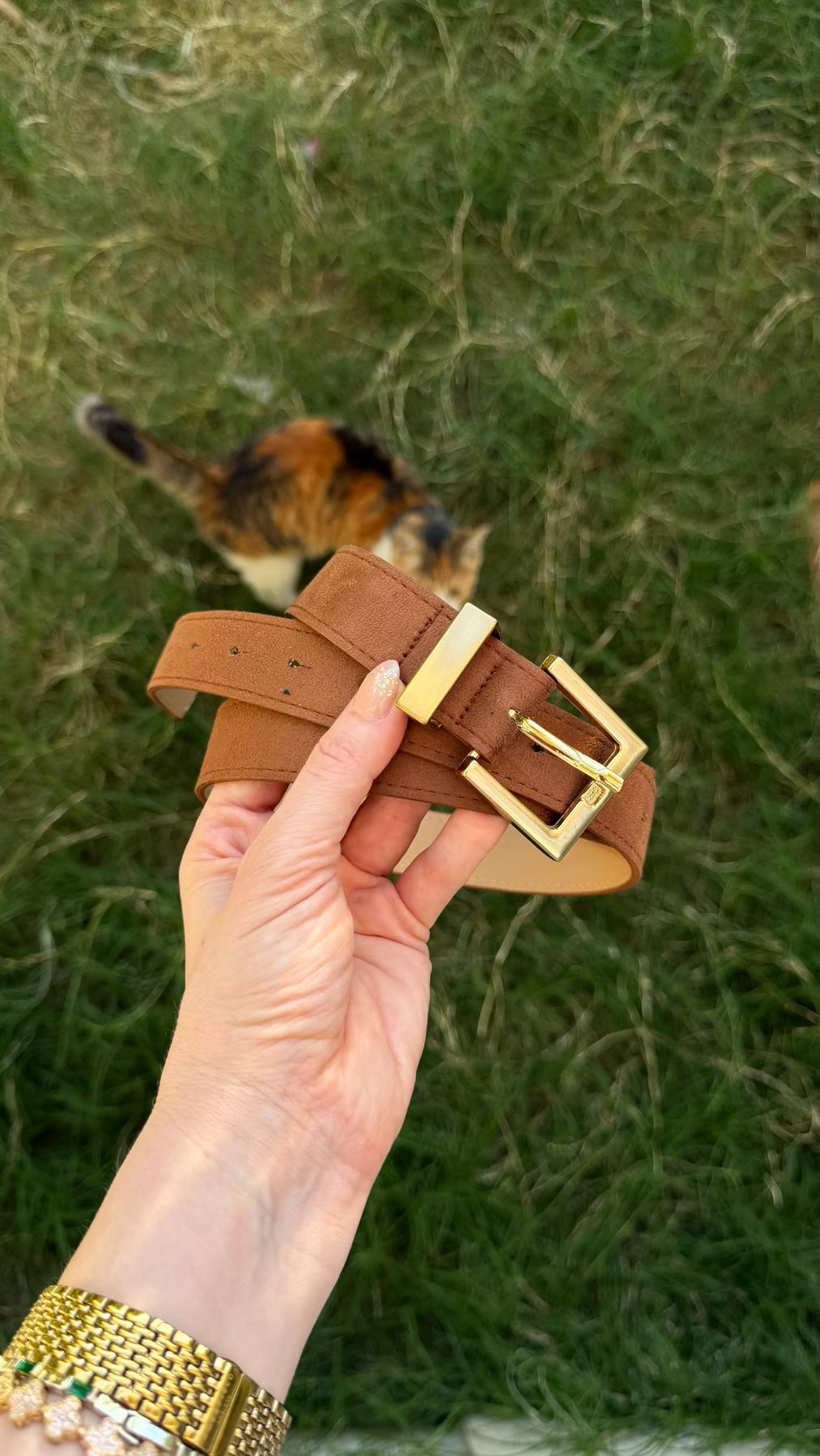 Süet Gold Tokalı Kemer Taba