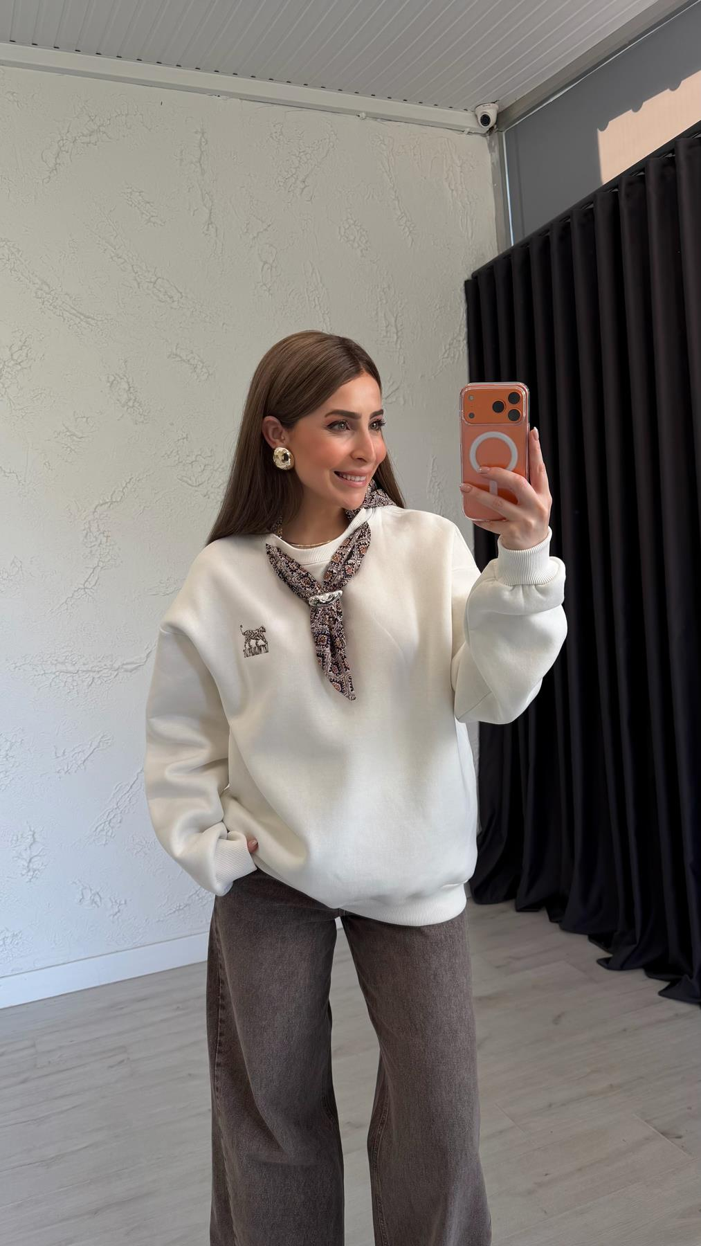 Wildlife Fularlı Sweatshirt Ekru (7648)