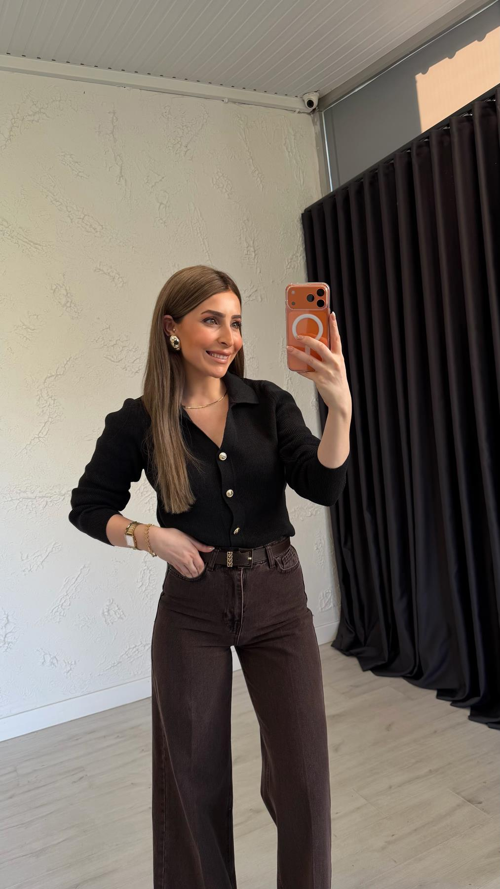 Model Ölçüleri Boy: 1.74 cm Kilo: 58 kg Model üzerindeki triko S bedendir. ürün boyu 43 cmdir.