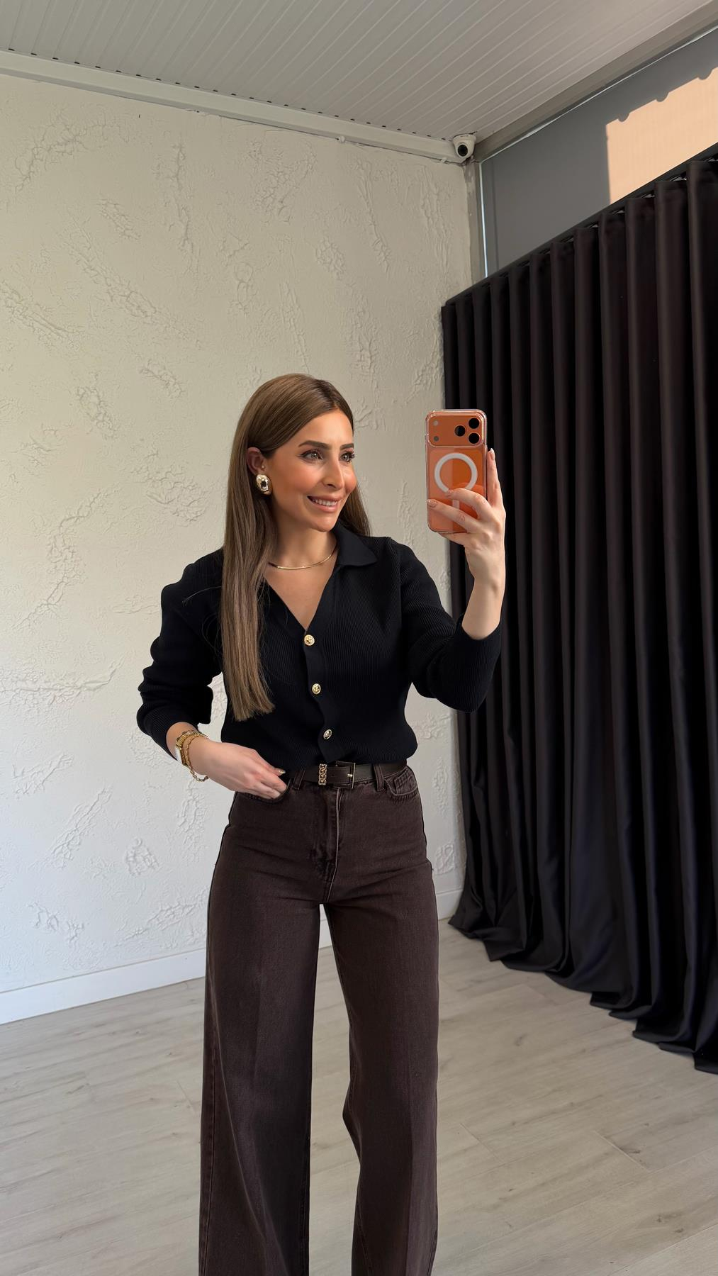 Model üzerindeki triko S bedendir. ürün boyu 43 cmdir.